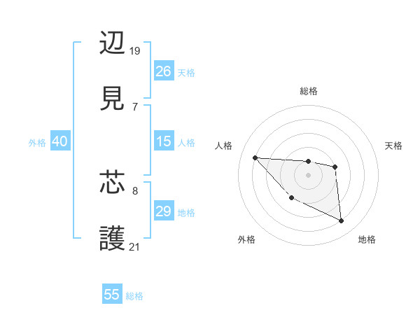 辺見 芯護さんを姓名の画数から五運を鑑定