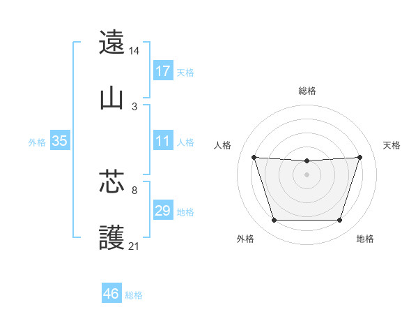 遠山 芯護さんを姓名の画数から五運を鑑定