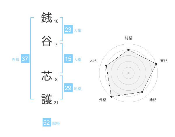 銭谷 芯護さんの総格は52画の4点!