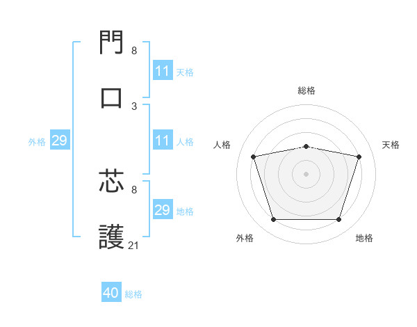 門口 芯護さんの総格は40画の2点!