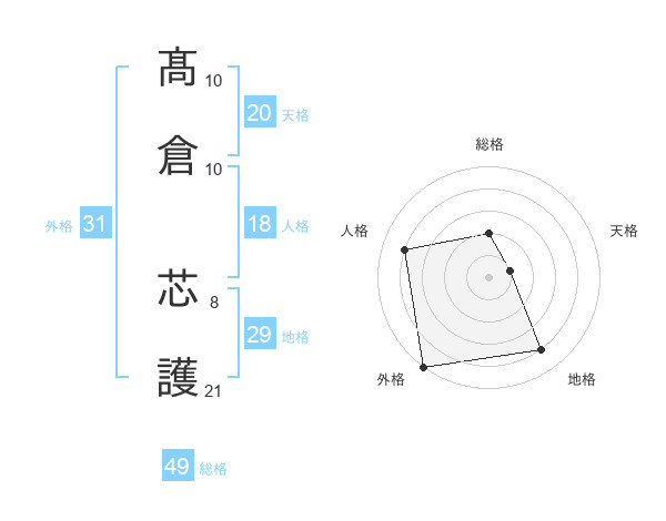 髙倉 芯護さんを姓名の画数から五運を鑑定