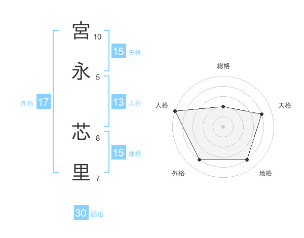 宮永 芯里さんの天格は15画の4点!