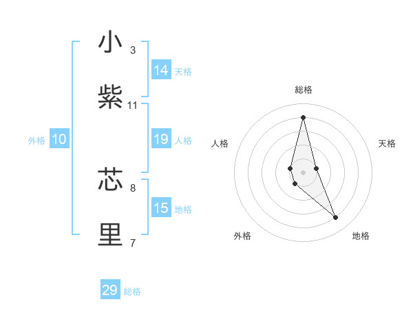 小紫 芯里さんの総格は29画の4点!