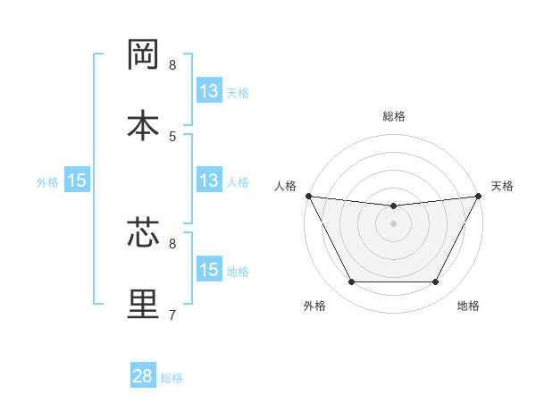 岡本 芯里さんの天格は13画の5点!