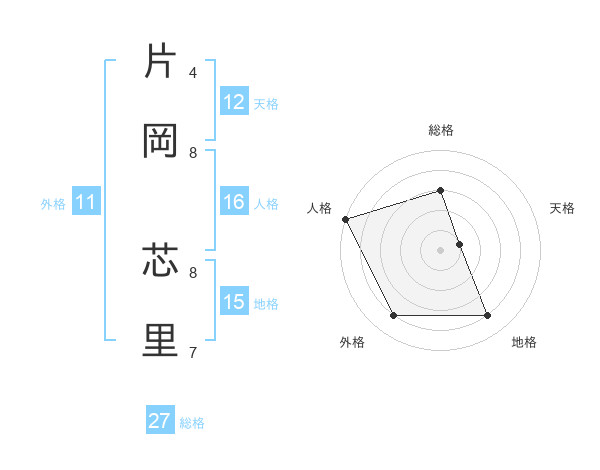 片岡 芯里さんを姓名の画数から五運を鑑定