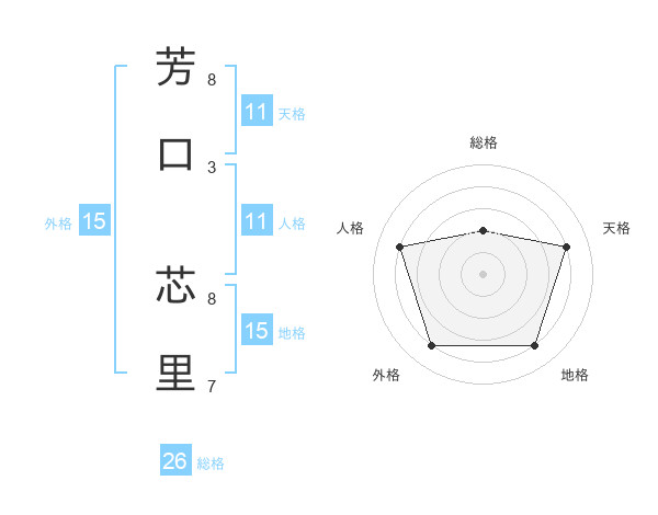 芳口 芯里さんの天格は11画の4点!
