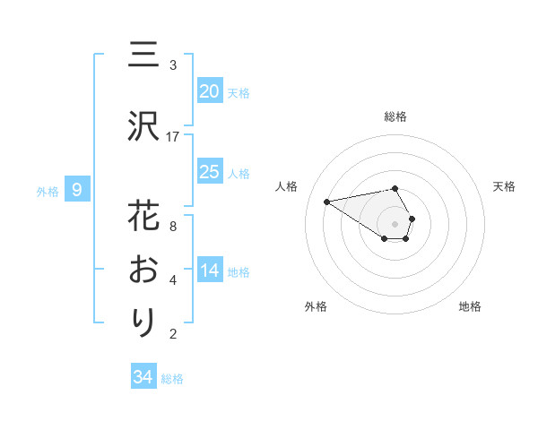 三沢 花おりさんの総格は34画の2点!