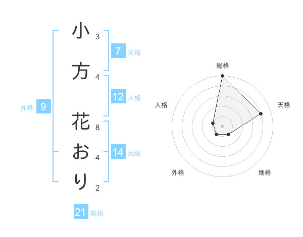 小方 花おりさんの総格は21画の5点!