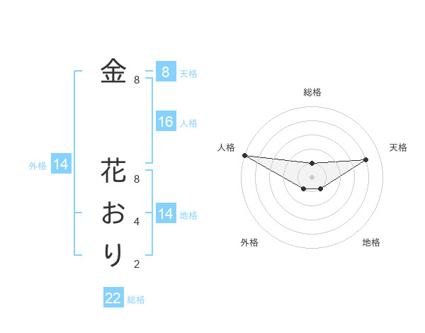 金 花おりさんの総格は22画の1点!