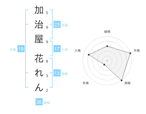 加治屋 花れんさんの天格は23画の5点!