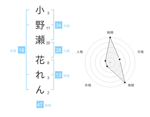 小野瀬 花れんさんを姓名の画数から五運を鑑定