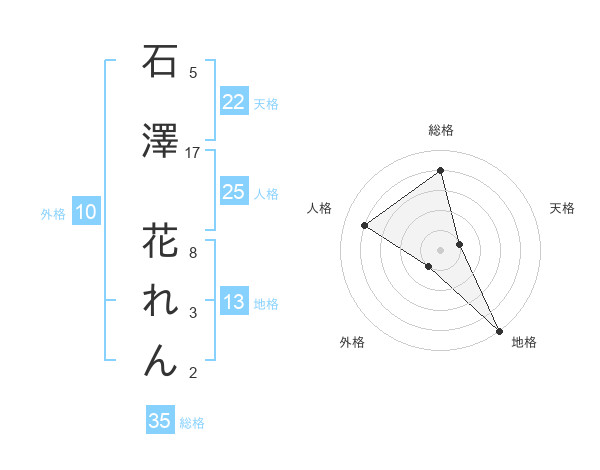 石澤 花れんさんを姓名の画数から五運を鑑定