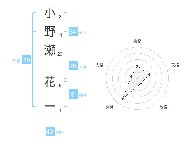 小野瀬 花一さんを姓名の画数から五運を鑑定