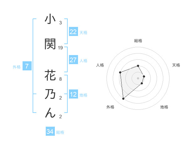 小関 花乃んさんを姓名の画数から五運を鑑定