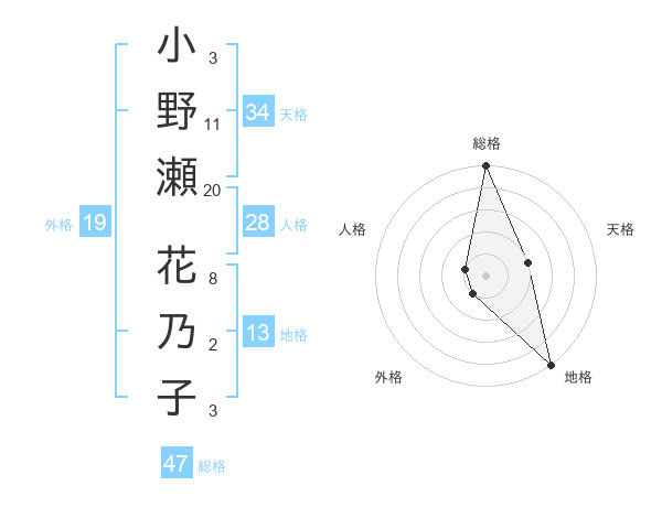 小野瀬 花乃子さんを姓名の画数から五運を鑑定