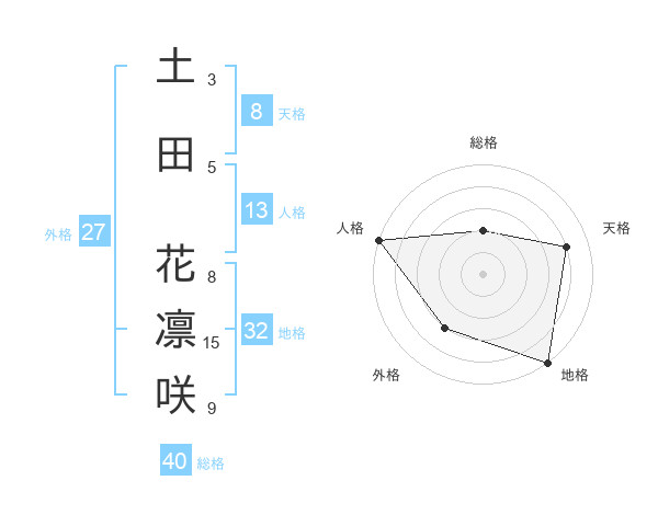 土田 花凛咲さんを姓名の画数から五運を鑑定