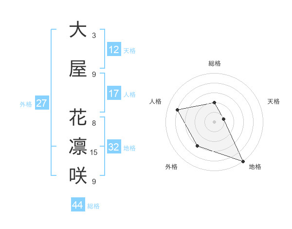 大屋 花凛咲さんを姓名の画数から五運を鑑定