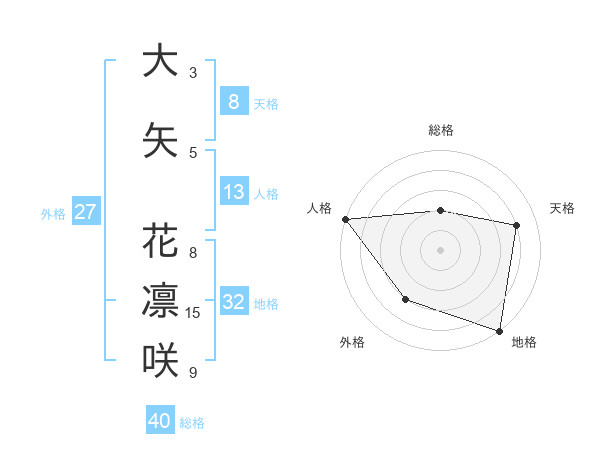 大矢 花凛咲さんを姓名の画数から五運を鑑定