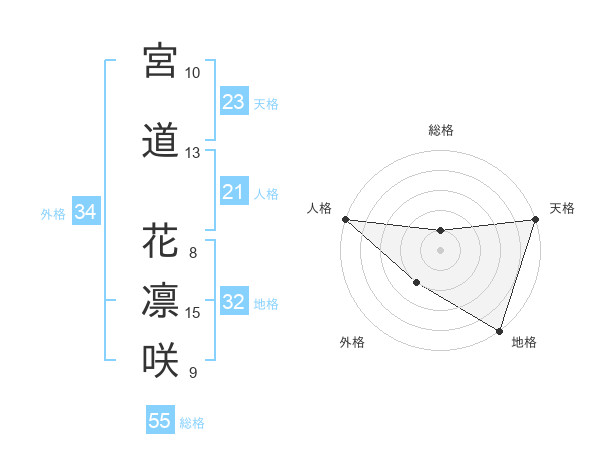 宮道 花凛咲さんを姓名の画数から五運を鑑定