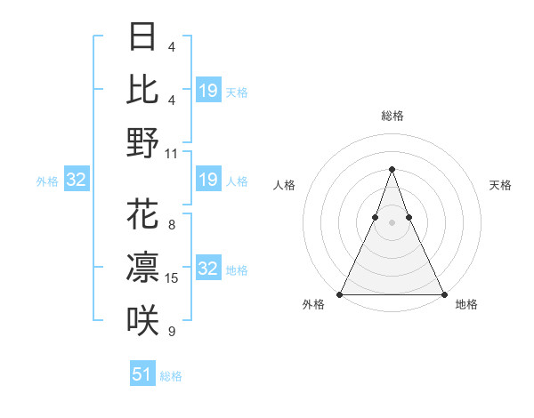 日比野 花凛咲さんを姓名の画数から五運を鑑定