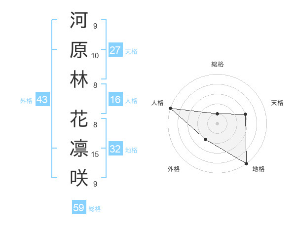 河原林 花凛咲さんを姓名の画数から五運を鑑定
