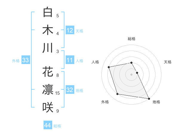 白木川 花凛咲さんを姓名の画数から五運を鑑定