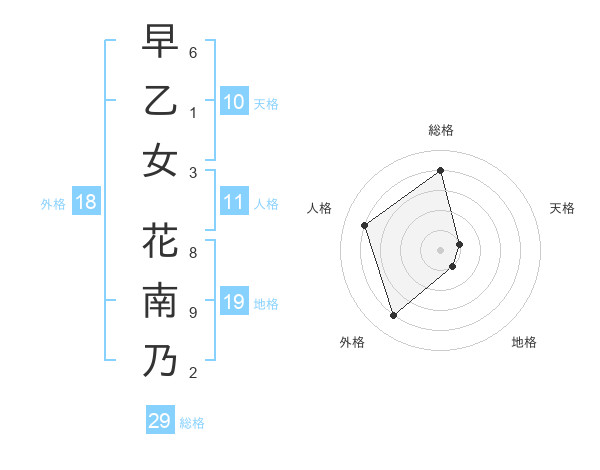 早乙女 花南乃さんを姓名の画数から五運を鑑定