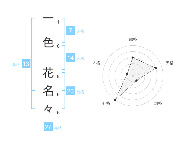 一色 花名々さんの外格は13画の5点!