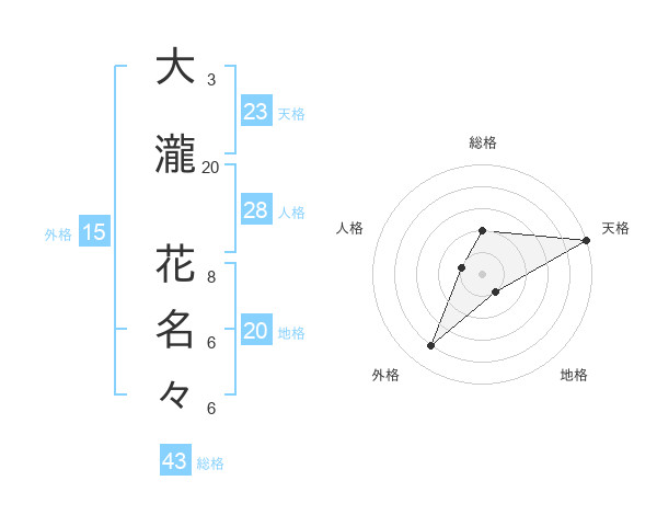 大瀧 花名々さんの天格は23画の5点!