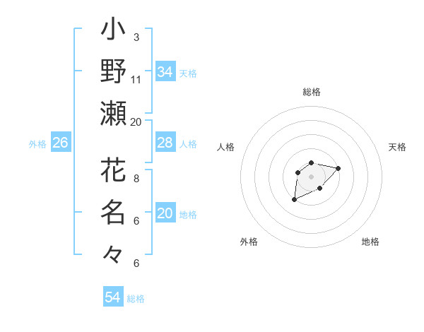 小野瀬 花名々さんを姓名の画数から五運を鑑定