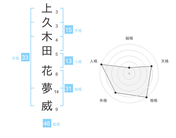 上久木田 花夢威さんを姓名の画数から五運を鑑定