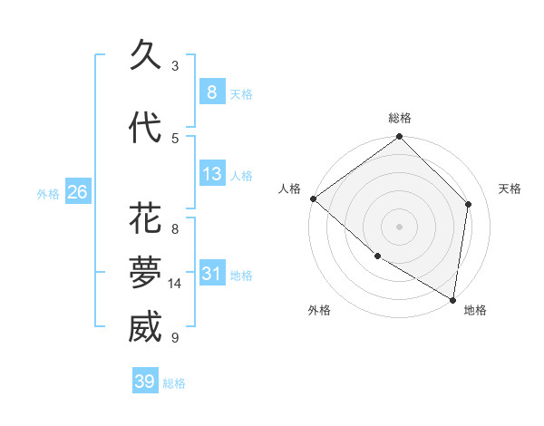 久代 花夢威さんの総格は39画の5点!