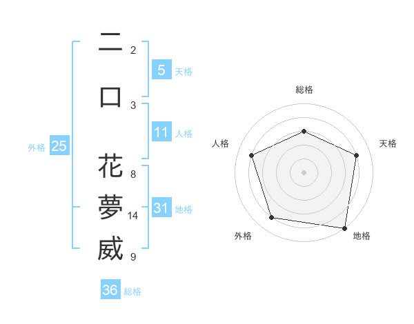 二口 花夢威さんを姓名の画数から五運を鑑定