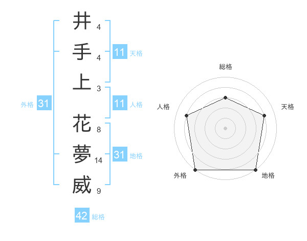 井手上 花夢威さんを姓名の画数から五運を鑑定