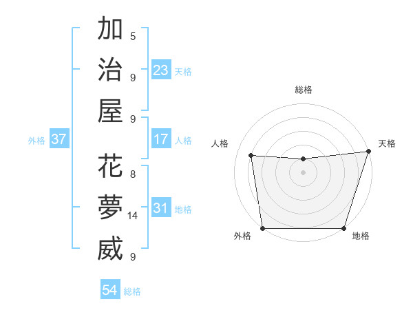 加治屋 花夢威さんを姓名の画数から五運を鑑定