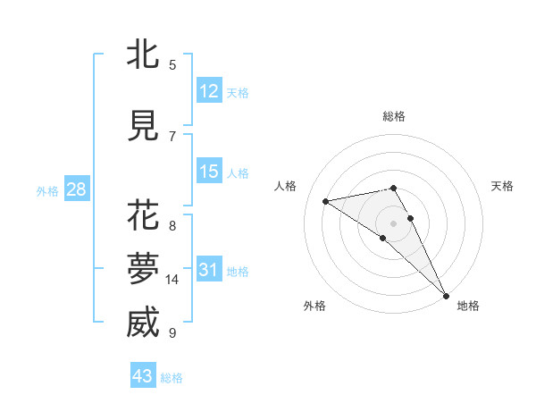 北見 花夢威さんの人格は15画の4点!