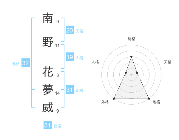 南野 花夢威さんの総格は51画の3点!