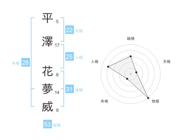 平澤 花夢威さんを姓名の画数から五運を鑑定