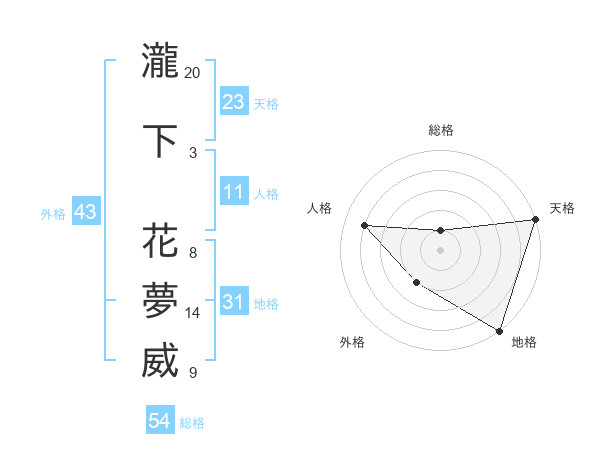 瀧下 花夢威さんを姓名の画数から五運を鑑定