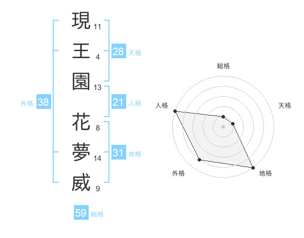 現王園 花夢威さんの人格は21画の5点!