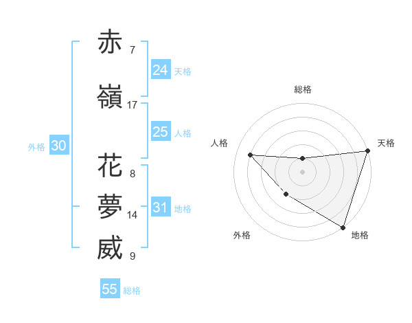 赤嶺 花夢威さんを姓名の画数から五運を鑑定