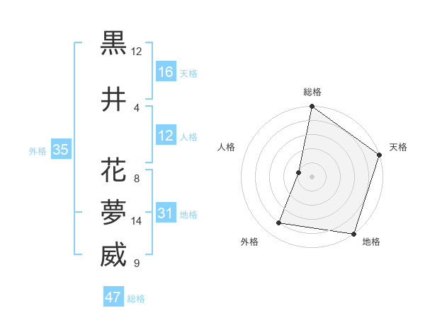 黒井 花夢威さんを姓名の画数から五運を鑑定
