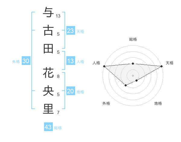 与古田 花央里さんを姓名の画数から五運を鑑定