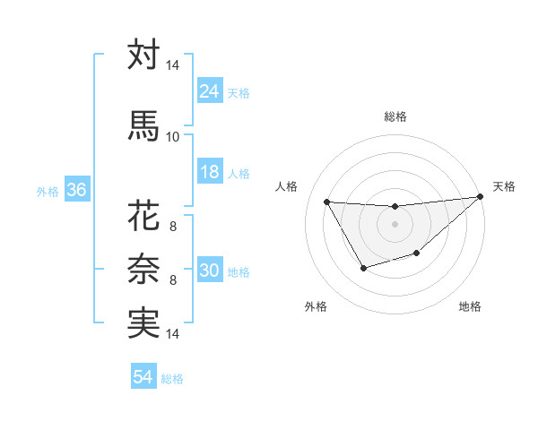 対馬 花奈実さんを姓名の画数から五運を鑑定