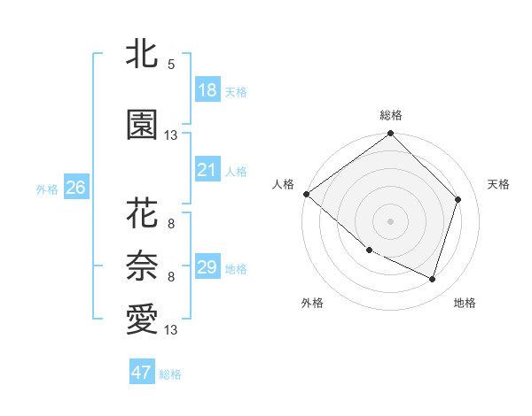 北園 花奈愛さんを姓名の画数から五運を鑑定