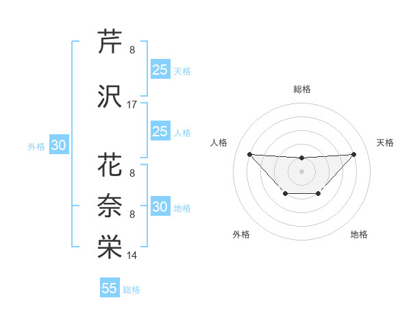 芹沢 花奈栄さんを姓名の画数から五運を鑑定