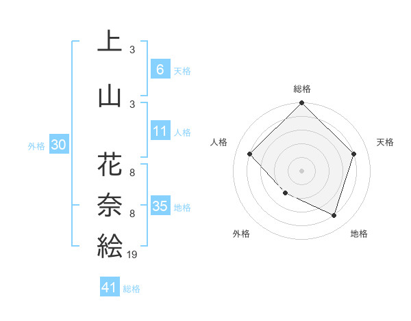 上山 花奈絵さんを姓名の画数から五運を鑑定