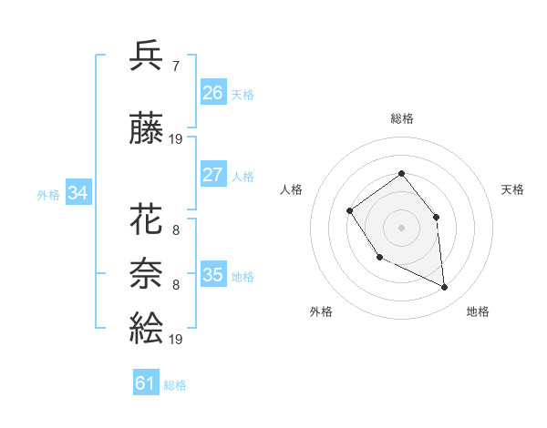 兵藤 花奈絵さんの総格は61画の3点!