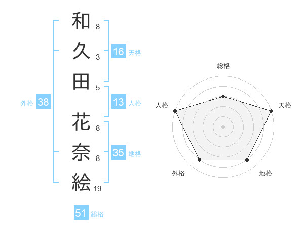 和久田 花奈絵さんの総格は51画の3点!