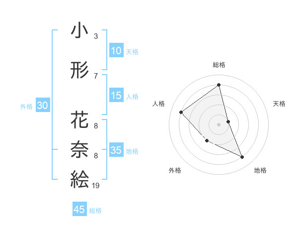 小形 花奈絵さんを姓名の画数から五運を鑑定